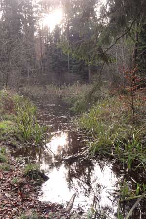 „Der Schwanensee“ Ein Kleinod der Natur,keine Pfütze nur!Zu jeder Jahreszeit,selbst bei großer Trockenheit, das Wasser nicht versiegt,was wohl am Boden liegt? Die Ökologie muß stimmen,weil kleine Fischlein schwimmen.Was sich da alles regt,weil`s Wasser sich bewegt. Schön ist`s anzusehn,wie Libellen ihre Runden drehn!Man spürt den Regentropfen,man hört des Spechtes klopfen.Vieles Kleingetiergenießt das Dasein hier!Die Blindschleiche und der Feuersalamandertummeln sich im Miteinander. Was will der Frosch uns sagen, mit seinem quaken?Der Bussard seine Runden dreht,der Reiher auf der Lauer steht.Hoch oben auf dem Baum,das Eichkätz`chen man sieht es kaum. Verschwunden ist das Entenpaar,ob der Fuchs der Übeltäter war?Im Frühjahr wenn der Kuckuck schreit, ist der Sommer nicht mehr weit. Kinder bleibt ein Weilchen stehn, Natur pur gibt`s hier zu sehn!Ein Hochgenuß das zarte Moos zu spüren,wenn eure Schritte seitlich in den Wald euch führen! Tut dem Gesang der Vöglein lauschen,ein Glücksgefühl wird euch berauschen!Schön ist`s unter schattigen Bäumen,genießt die Zeit zum träumen! Karl Schmitt 2008 |